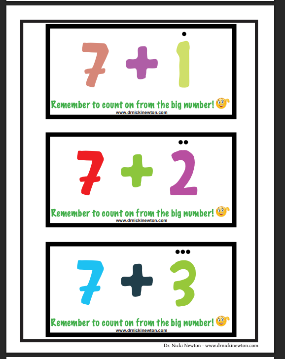 Why this matters: When solving 7+3, rather than counting 1,2,3,4,5,6,7,8,9,10, students learn to start at 7 and count "8,9,10." This "count on" strategy builds number sense, develops mental math fluency, and creates a solid foundation for more advanced addition concepts!
